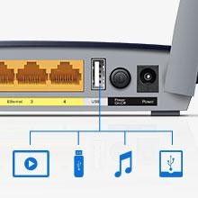 Share files, videos, music, and photos across your network by connecting devices directly to the USB port. Increase storage by connecting external drives and access files from any connected computer.