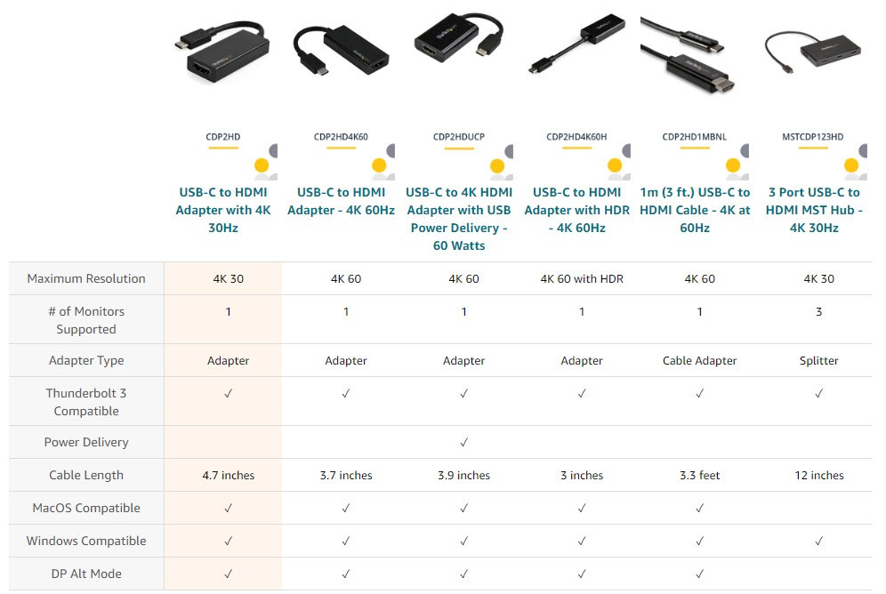 This USB type-C video adapter is highly portable with a small footprint and lightweight design. The adapter is a great accessory for your MacBook or Chromebook, fitting easily into your laptop bag or carrying case, which is great for BYOD (Bring Your Own Device) applications at the office.
