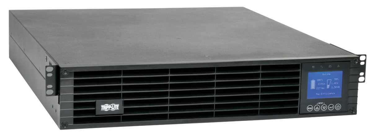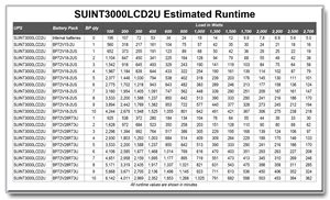 UPS battery backup keeps connected equipment operational through short power failures, and it provides time to save data and perform an orderly system shutdown in case of a prolonged blackout. The SUINT3000LCD2U has an internal battery that provides 13.5 min. of battery support for a half load (1350 watts) and 5 min. for a full load (2700 watts). Runtime is expandable with optional external battery packs (Tripp Lite model BP72V15-2U, BP72V28RT-3U or BP72V18-2US), sold separately. The external battery packs are hot-swappable and can be replaced without disruption to connected equipment.