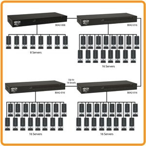 The B042-008 is capable of controlling up to 248 servers/computers by daisy-chaining additional B042-Series KVMs. This gives network managers the flexibility to add capacity when it's needed, accommodating growing data center requirements without disrupting existing equipment.