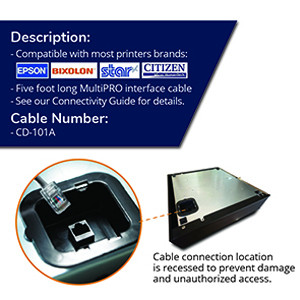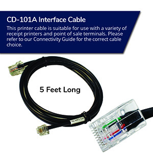 This interface cable is suitable for use with a variety of receipt printers and is an efficient replacement for CD-005A and CD-014A cables.