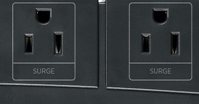 Surge protected outlets safeguard your connected equipment from damage during an AC power surge or spike.