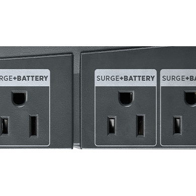 These outlets safeguard your connected equipment during an AC power surge or spike, and provide enough battery backup power for you to save files and properly shut down during an outage.