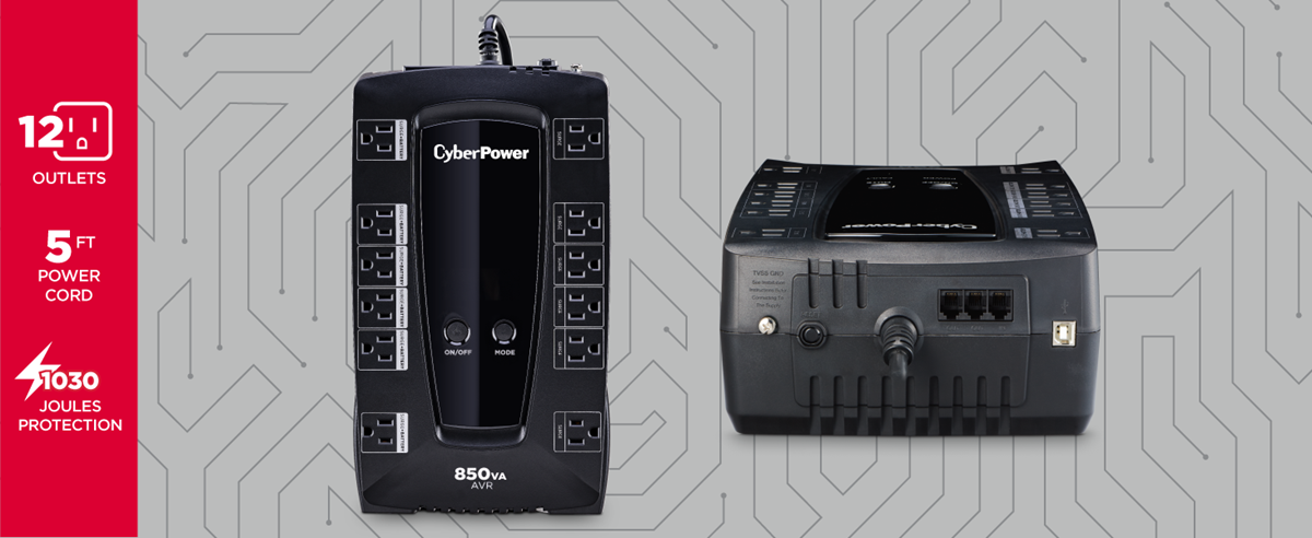 This unit is equipped with (6) surge and battery protected outlets and (6) surge protected outlets to keep your equipment protected from power surges and spikes.