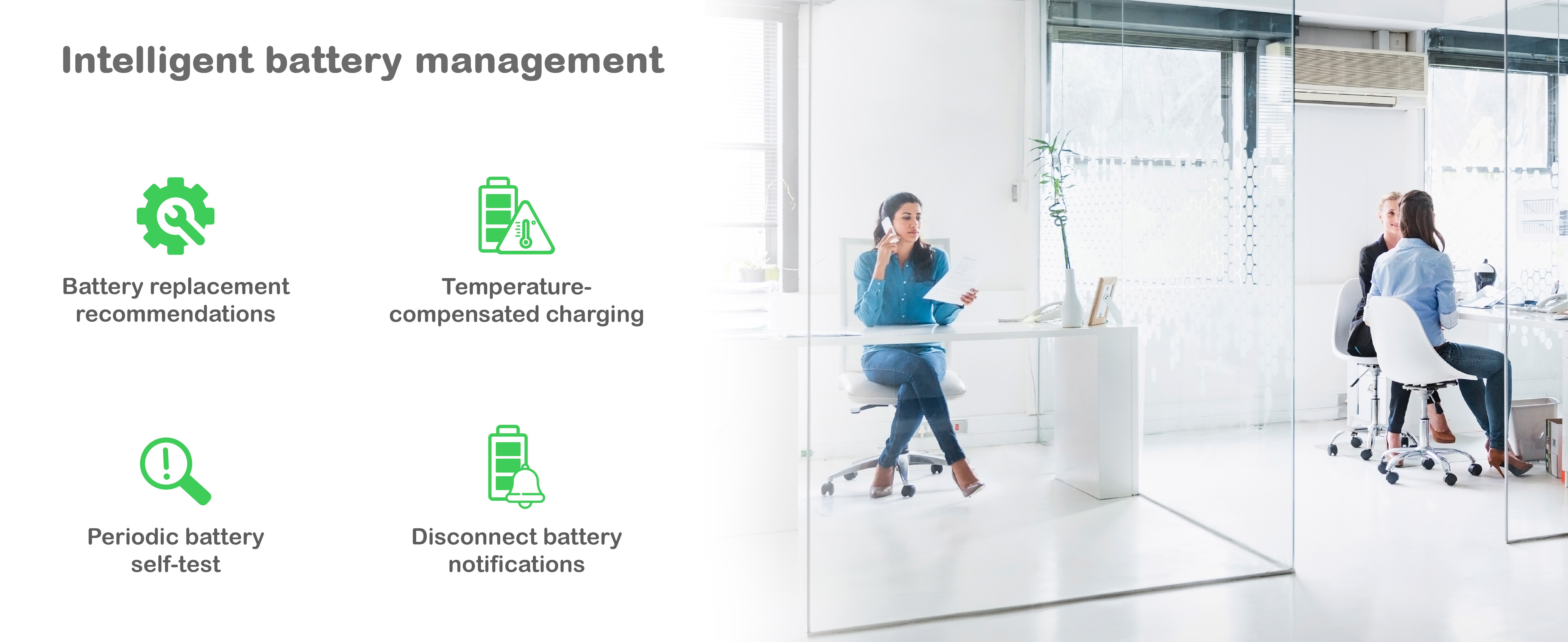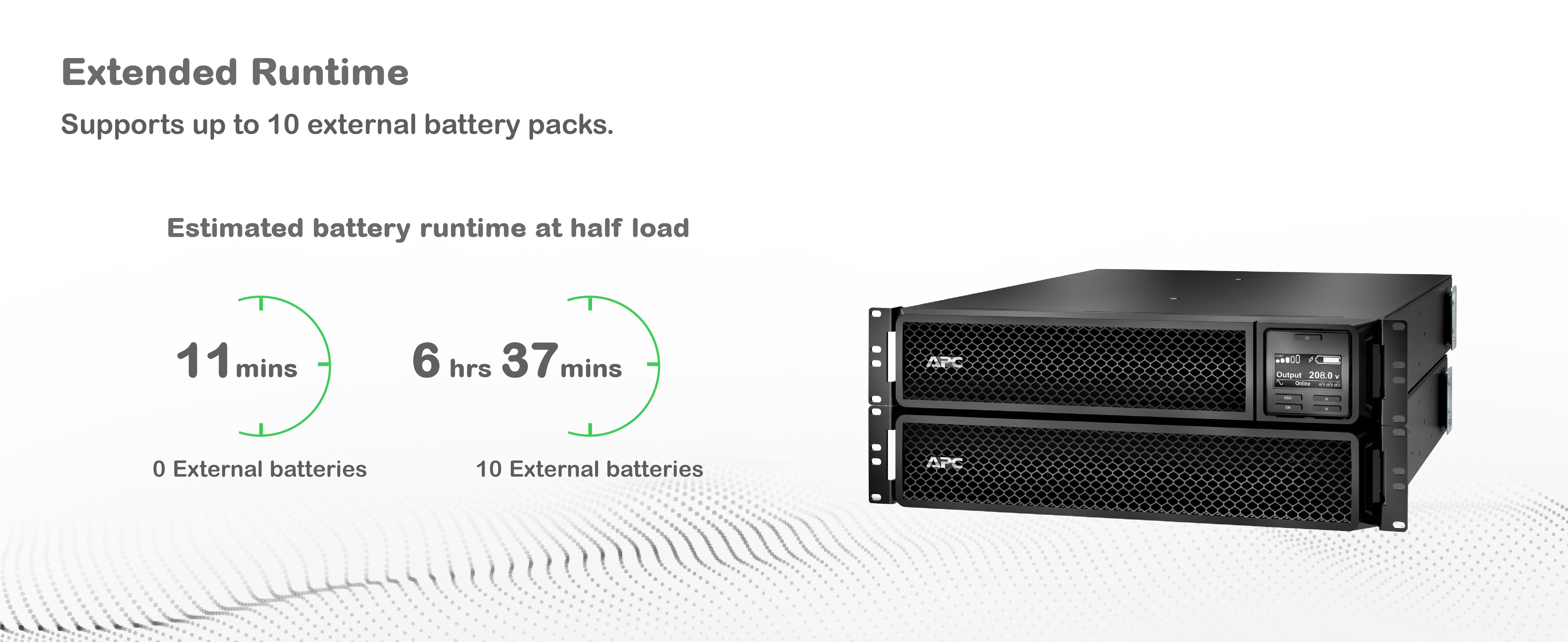 Extended runtime options Connect up to 10 external battery packs for extended runtime needs |