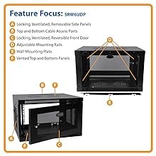 The SRW6UDP comes fully assembled and ready to mount to the wall, or you can add Tripp Lite’s optional SRCASTER (sold separately) to turn it into a mobile rolling rack. The side panels can be removed for convenient installation, maintenance and replacement of equipment. Square and threaded mounting holes and numbered rack spaces make equipment installation easy.