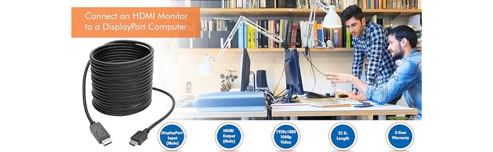 This passive adapter cable helps you save money by making your current HDMI monitor compatible with a DisplayPort-equipped computer. High-quality connectors provide maximum conductivity to ensure a clean, consistent video signal.