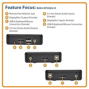 The B004-DP2UA2-K supports Windows, Mac, Linux and Sun. It’s easy to set up with no software or drivers to install, and all necessary cables are included. It also supports DisplayPort Dual Mode (DP++) for directly outputting single-link DVI or HDMI signals via adapter. It works with multimedia keyboards, multi-function mice, and wireless keyboards and mice.
