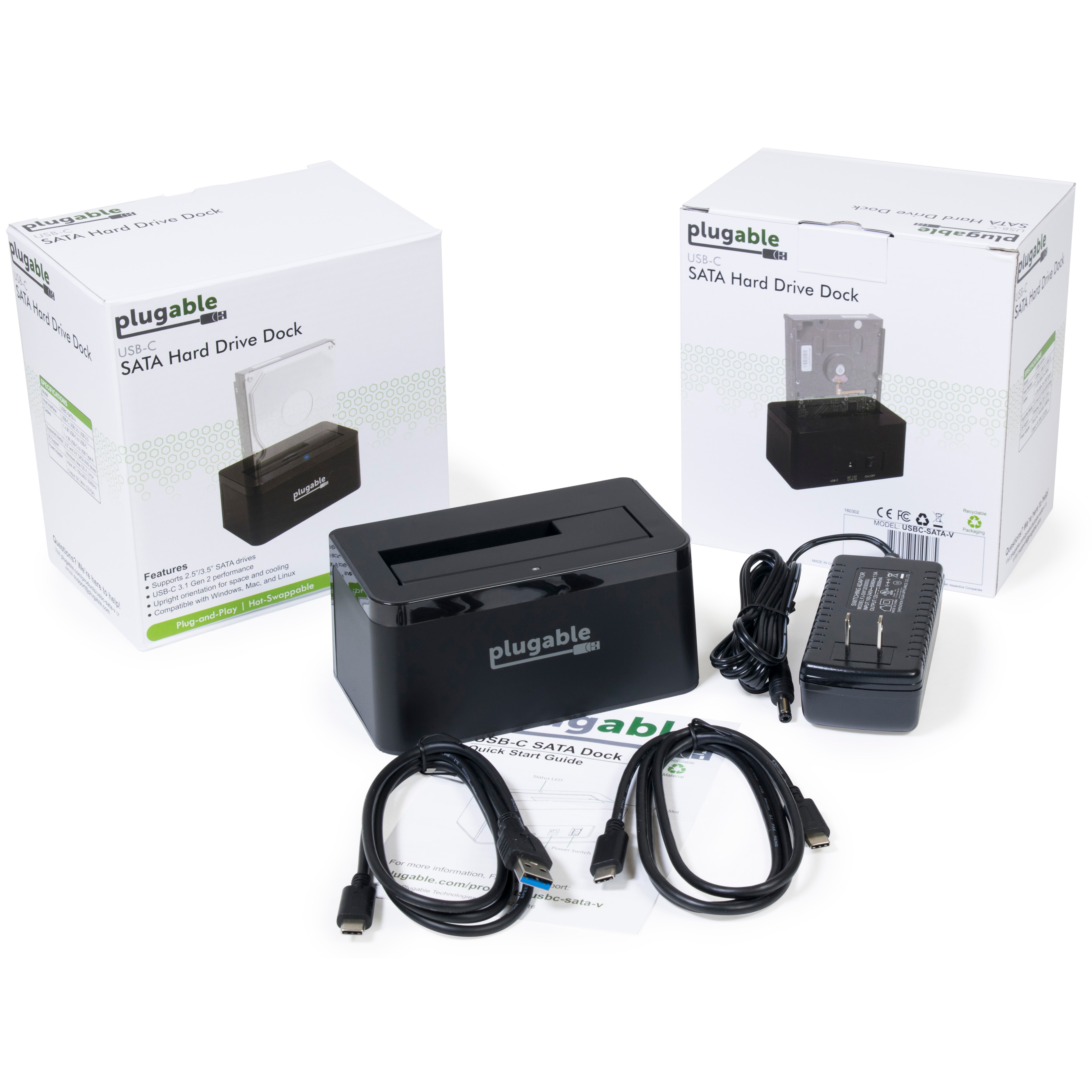 The Plugable USBC-SATA-V is a single-bay SATA hard drive/SSD dock solution featuring a convenient toolless design as well as a vertical cartridge-style hot-swap system and driverless, plug-and-play installation. The disk dock supports all 2.5 and 3.5 inch SATA I, II, and III hard drives, solid state drives, and hybrid drives up to any capacity (8TB+) using the latest ASMedia ASM1351E SATA III to USB 3.1 Gen 2 bridge chipset and advanced firmware with USB Attached SCSI protocol (UASP) and bulk-only transfer (BOT) transfer support for maximum features and performance. The ASM1351E is a single chip solution built with advanced process technology to optimize both power consumption and performance compared to previous generations of USB-to-SATA bridge ICs.