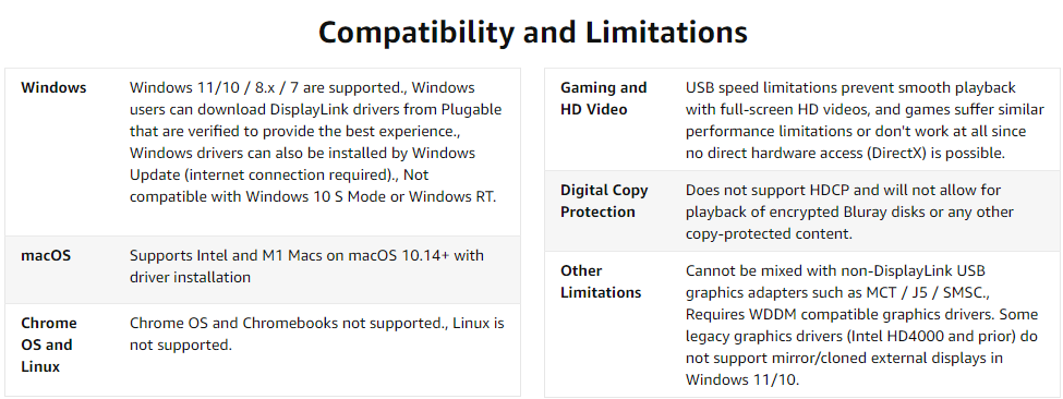 Featuring the DisplayLink DL-3500 graphics chipset, the Plugable UGA-2KHDMI allows you to an additional HDMI monitor to virtually any Windows laptop, desktop, tablet, or macOS system 10.14+ (one adapter required per monitor, up to six on Windows PCs and up to four on macOS). Multitask with a dedicated monitor for each document or application.