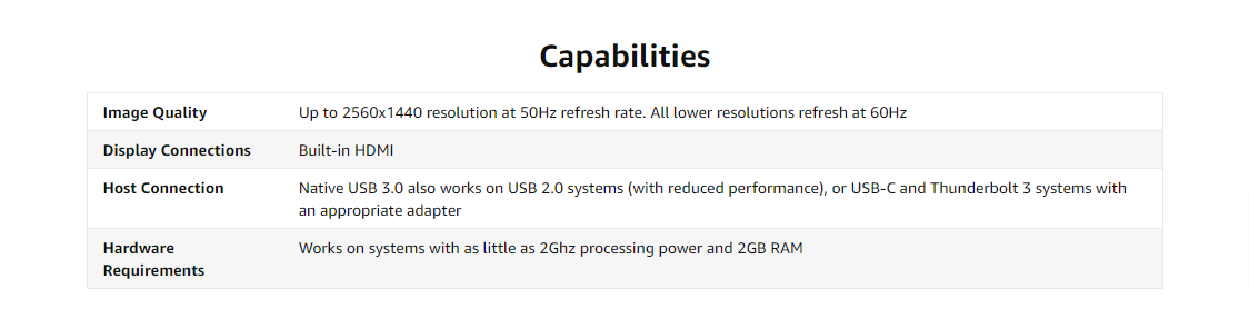 Multiple DisplaysConnect multiple USB 3.0 display adapters to your computer to expand your screen space by up to six additional 2560x1440 displays. Note: 1440p displays will operate at 50Hz refresh rate. 1080p and lower modes will refresh at 60Hz. |