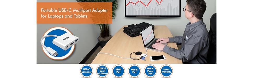 Travel with a All-In-One USB-C Multiport Docking StationBecause just one USB-C connection provides three different ports, you don’t need multiple docking station while on the go. This docking station is also bus-powered, so you don’t have to travel with the weight of a separate external power supply. - With a footprint similar in size to a credit card, this portable docking station fits almost anywhere. - Lightweight, streamlined design doesn’t add weight to your load. - Built-in cable eliminates the chance of losing or forgetting the USB-C cord. - Plug-and-play operation means you don’t need software or drivers. |