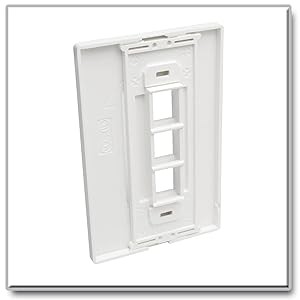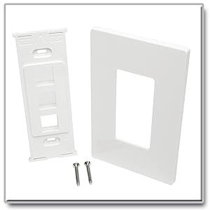 The high-impact polycarbonate wall plate fits any mid-sized or standard single-gang box. It’s colored white to blend elegantly into any home or office décor for a sleek, professional installation. Two mounting screws are included.