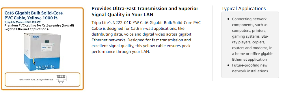 This 1000-ft. cable comes pre-packaged in an easy-to-use pull box. Simply pull what you need for your installation and keep the remainder stowed away.