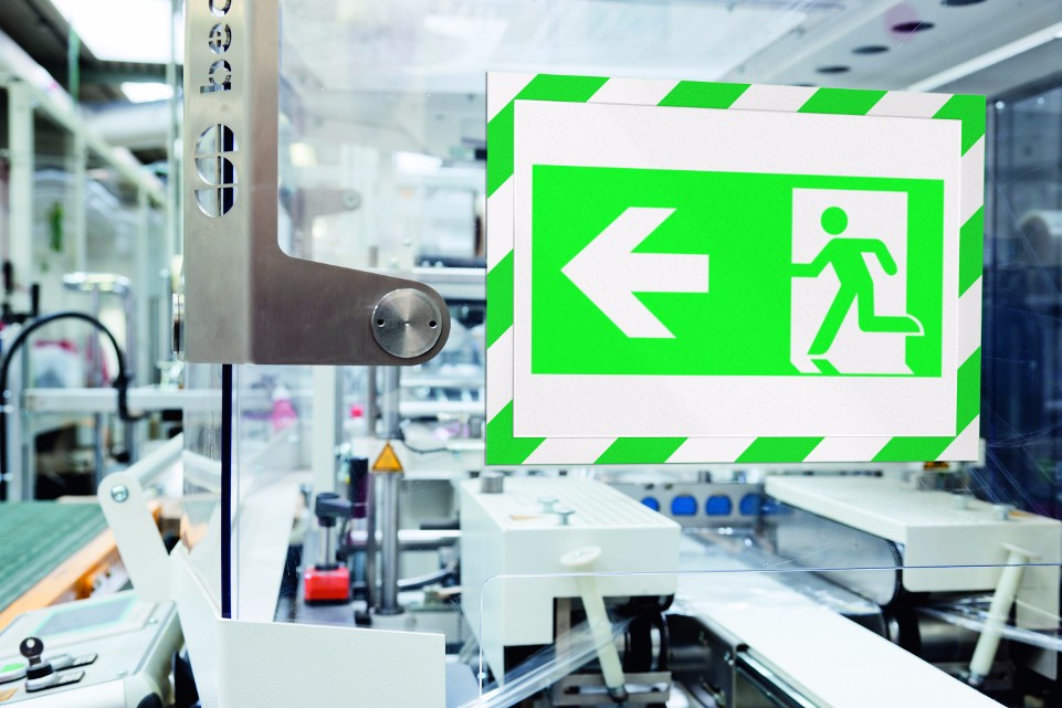 Dual-colored frames fully compliant with ISO 3864-4 for safety colors