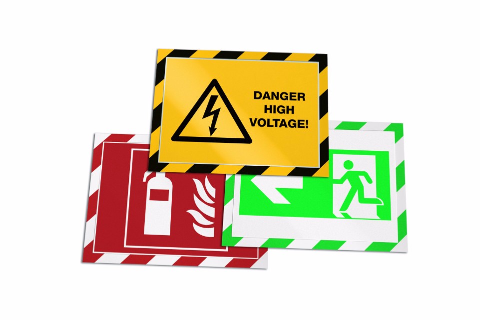 Dual-colored frames fully compliant with ISO 3864-4 for safety colors