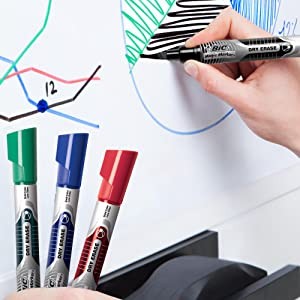 Featuring liquid ink, these dry erase markers provide smooth, consistent ink flow that helps you easily create notes and drawings that stand out on dry erase boards, glass, and most non-porous surfaces. The markers erase easily for quick cleanup.