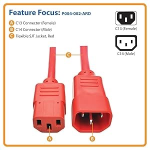 The P004-002-ARD features a red SJT jacket and fully molded red ends, allowing you to easily identify your connections in a crowded rack or workstation.