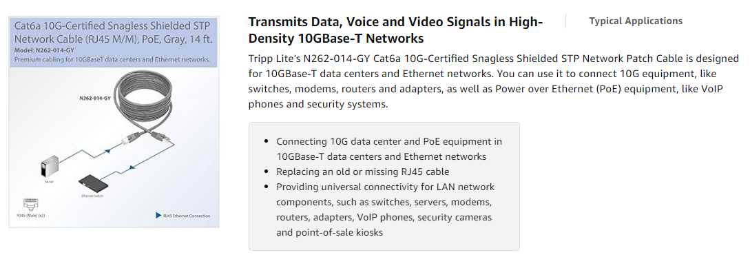 When you choose this genuine Tripp Lite cable, you get superior performance plus peace of mind. We’re so confident of its quality that we warrant it to be free from defects in material and workmanship for life! The N262-014-GY is also manufactured in compliance with strict RoHS specifications, reflecting Tripp Lite’s commitment to environmental responsibility.