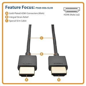 Backward compatible with previous HDMI generations, the P569-006-SLIM works in all HDMI cabling scenarios. Use it to connect any HDMI-enabled source, such as a Blu-ray player, video game system or computer, to any 4K-enabled television, monitor or projector.