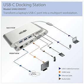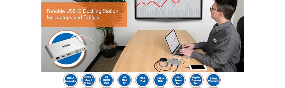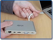 Newer tablets, laptops, Chromebook and MacBook notebooks, desktop computers and even smartphones often have USB Type-C ports, but come equipped with few others. Using a single USB-C or Thunderbolt 3 port, this Tripp Lite docking station adds 11 connection options to your device.