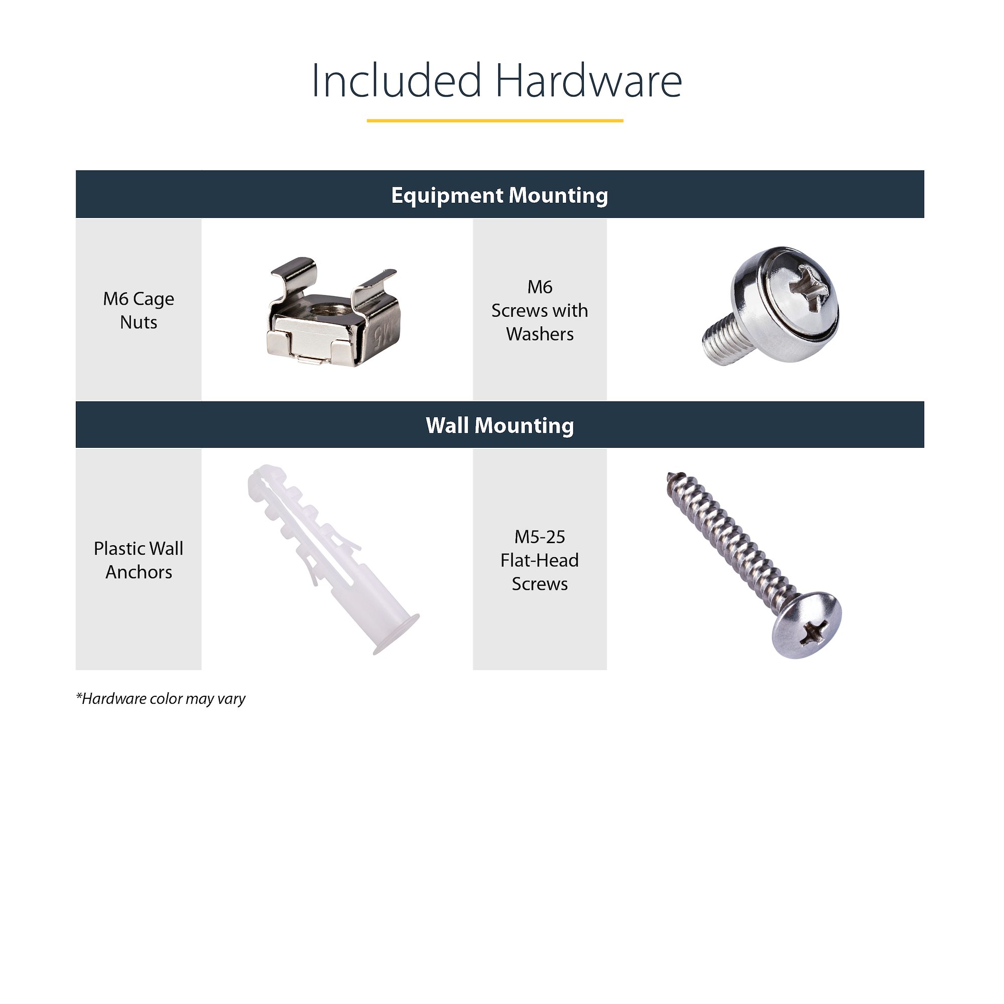 Cage nuts and screws are included with the wall-mount bracket, to save you the hassle of sourcing separate mounting hardware.