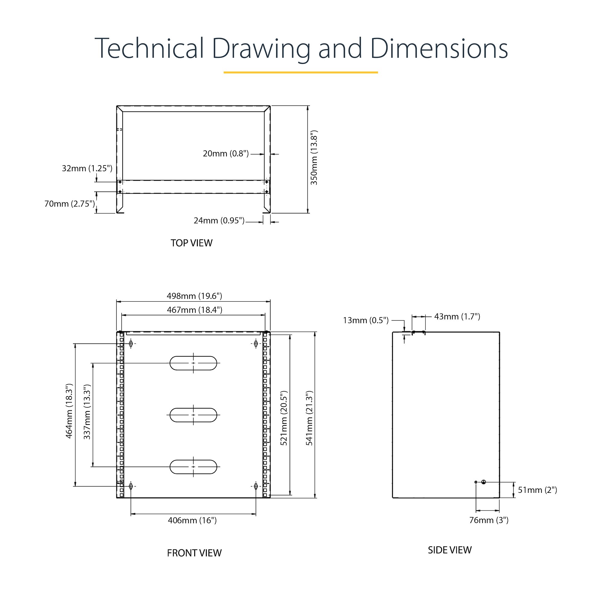 The wall rack is constructed of solid steel to ensure a sturdy and safe mounting solution for your mission-critical equipment. Also, because the wall-mount rack's mounting holes are positioned 16 in. apart, it exactly matches standard drywall construction framework to ensure simple and secure wall-stud anchoring. The rack also features a rear access panel that can be used to easily run cabling into the rack.