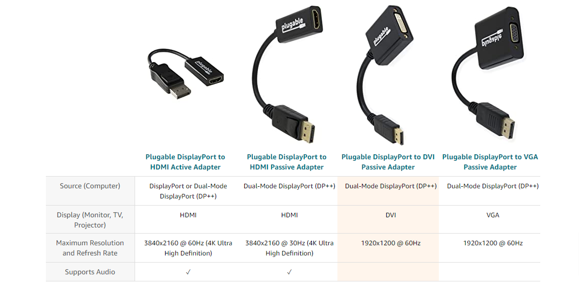 Plugable's DisplayPort to DVI passive adapter (DPM-DVIF) allows you to connect from a Dual-Mode DisplayPort (DP++) output on your laptop, desktop, or tablet to virtually any DVI-enabled display.
