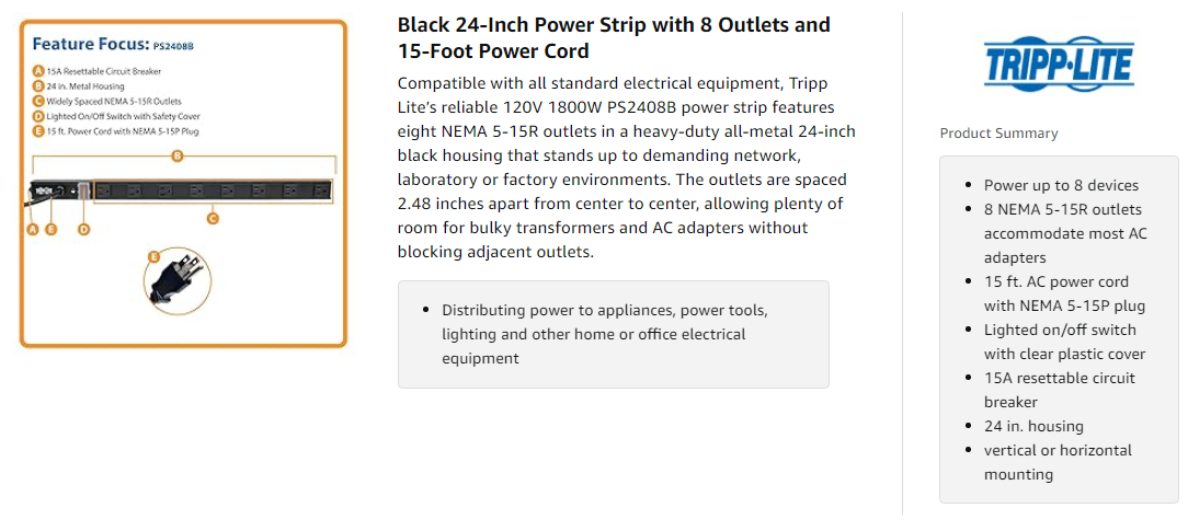 The PS2408B comes with a lifetime warranty. It’s manufactured in compliance with strict RoHS specifications, reflecting Tripp Lite’s commitment to environmental responsibility.