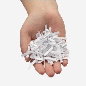 Shreds paper into cross-cut sections.