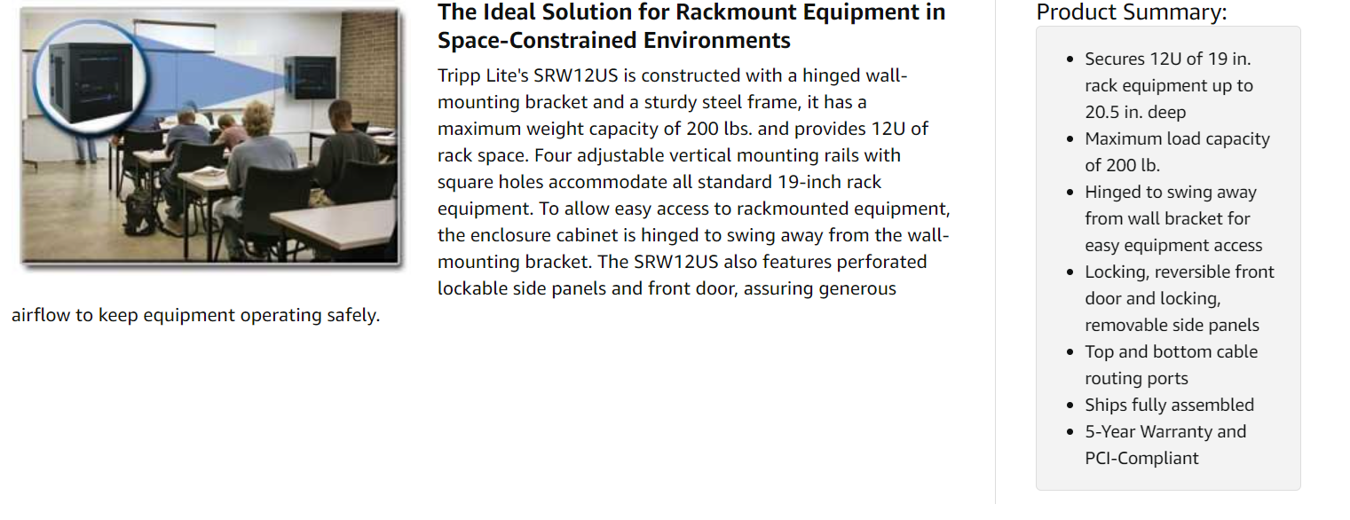 The SRW12US comes with a 5-Year Warranty and meets all enclosure requirements towards PCI DSS (Payment Card Industry Data Security Standard) compliance.