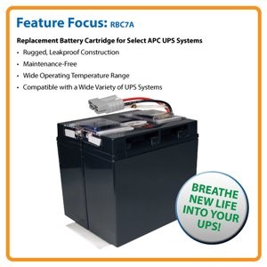 Extend the Life of Your UPS! Tripp Lite’s RBC7A premium UPS Replacement Battery Cartridge breathes new life into select APC UPS systems suffering from expired or weak internal batteries. It provides up to 30% longer runtime than basic replacements and is compatible with many APC models, including the SU700XL, SU700XLNET, SU1000XLNET, BP1400, SUVS1400, SU1400, SU1400NET, and SUA1500.