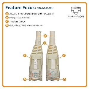 When you choose this genuine Tripp Lite cable, you get superior performance plus peace of mind. We’re so confident of its quality that we warrant it to be free from defects in material and workmanship for life! The N201-006-WH is also manufactured in compliance with strict RoHS specifications, reflecting Tripp Lite’s commitment to environmental responsibility.