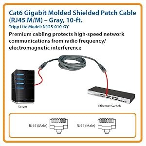 This 10-ft. Tripp Lite Cat6 Gigabit Molded Shielded Patch Cable is the premium solution for connecting network components like computers, printers, Internet-enabled gaming systems and Blu-ray players, copy machines, routers and modems in a home or office application.