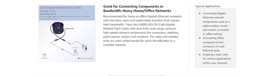 The N200-025-PU comes with a lifetime warranty. It’s manufactured in compliance with strict RoHS specifications, reflecting Tripp Lite’s commitment to environmental responsibility.