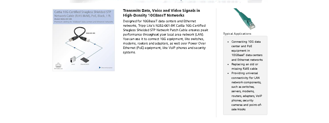 When you choose this genuine Tripp Lite cable, you get superior performance plus peace of mind. We’re so confident of its quality that we warrant it to be free from defects in material and workmanship for life! The N262-001-BK is also manufactured in compliance with strict RoHS specifications, reflecting Tripp Lite’s commitment to environmental responsibility.