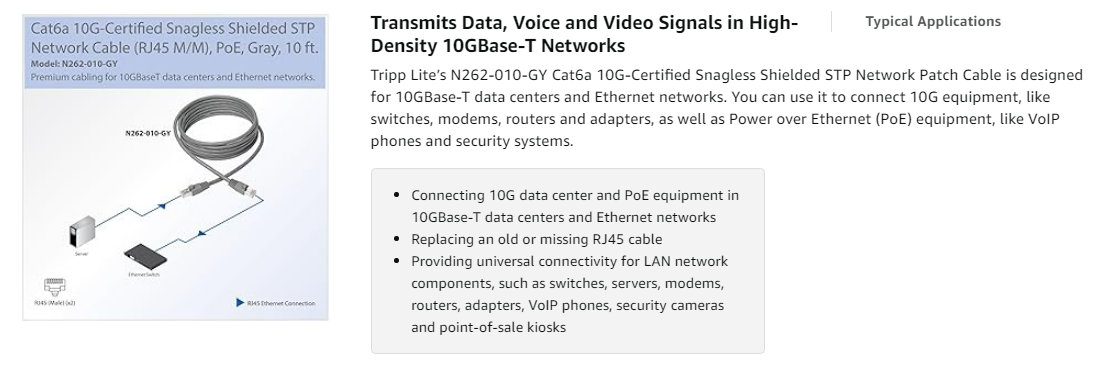 Comes Backed by a Lifetime WarrantyWhen you choose this genuine Tripp Lite cable, you get superior performance plus peace of mind. We’re so confident of its quality that we warrant it to be free from defects in material and workmanship for life! The N262-010-GY is also manufactured in compliance with strict RoHS specifications, reflecting Tripp Lite’s commitment to environmental responsibility. |