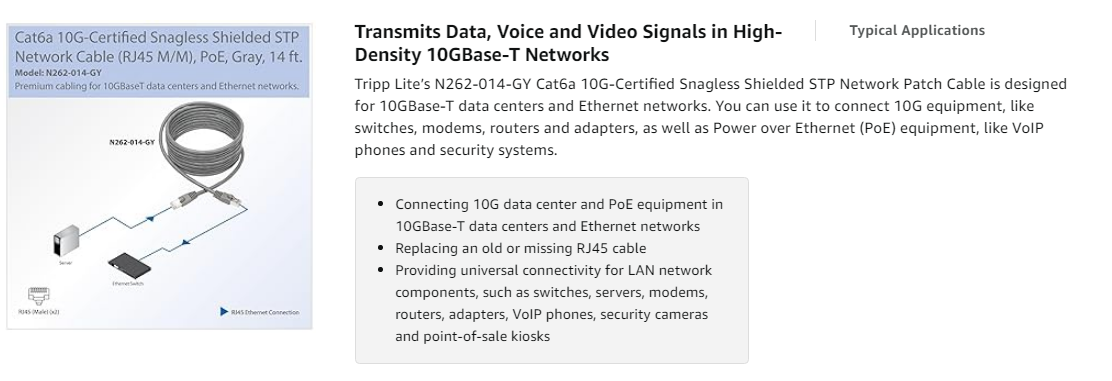 When you choose this genuine Tripp Lite cable, you get superior performance plus peace of mind. We’re so confident of its quality that we warrant it to be free from defects in material and workmanship for life! The N262-014-GY is also manufactured in compliance with strict RoHS specifications, reflecting Tripp Lite’s commitment to environmental responsibility.