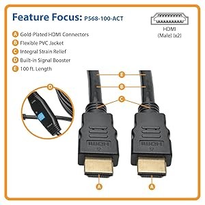 With no software or drivers required, the P568-100-ACT is completely plug-and-play. Simply connect one end to your source and the other to your display. This cable is manufactured in compliance with HDCP v1.3 standards but is backward compatible with previous HDMI generations.