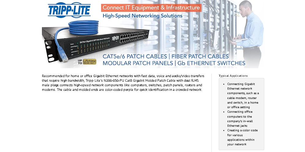 The N200-050-PU comes with a lifetime warranty. It’s manufactured in compliance with strict RoHS specifications, reflecting Tripp Lite’s commitment to environmental responsibility.