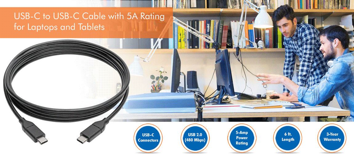 Newer tablets, laptops, Chromebook™ and MacBook® notebooks and even smartphones often have only USB Type-C™ ports. This Tripp Lite USB 2.0 cable has USB-C™ connectors on both ends to connect and charge these USB-C devices. With a 5-amp power rating, this cable is the perfect accessory for your USB-C device.