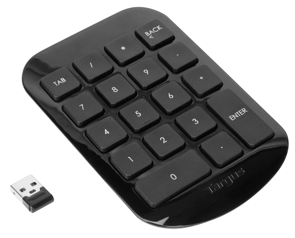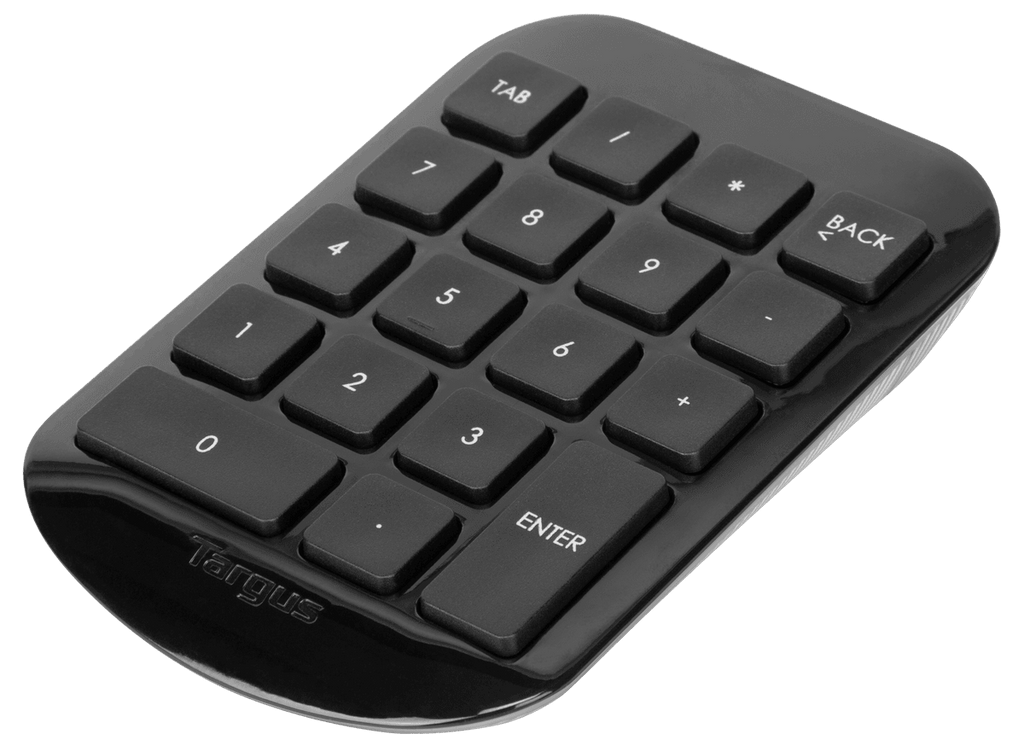 The Targus Wireless Numeric Keypad allows users to type numbers into spreadsheets and other applications quickly and easily. The full-size 19mm keys improve speed and accuracy by making it easier to locate and press the numbers you are looking for. The integrated ergonomic tilt provides added comfort which helps reduce wrist strain after a long work day.