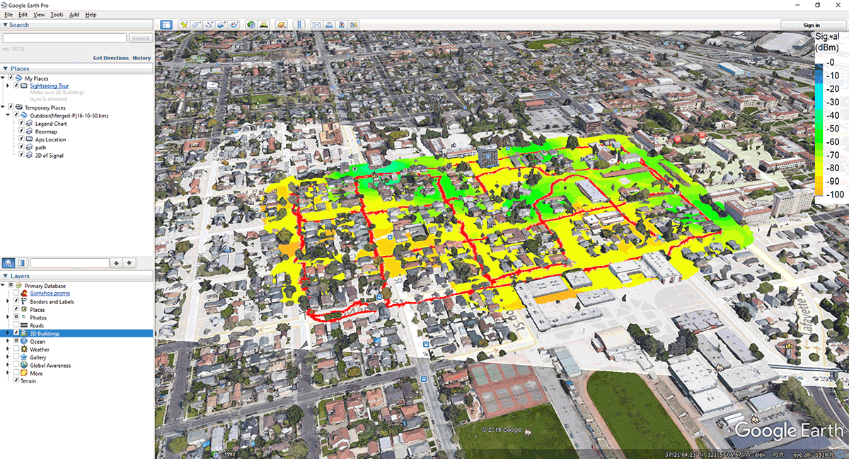 With the combination of GPS support and integration with Google Earth, AirMagnet Survey PRO provides a clear path to fast, fully-automated outdoor wireless site surveys. Users can leverage their NMEA-compliant GPS device to automatically collect outdoor wireless data. Users can import street maps of any city in the world, allowing results to be analyzed in the AirMagnet Survey user interface or exported into Google Earth for a zoomed-in view to any street within the city.