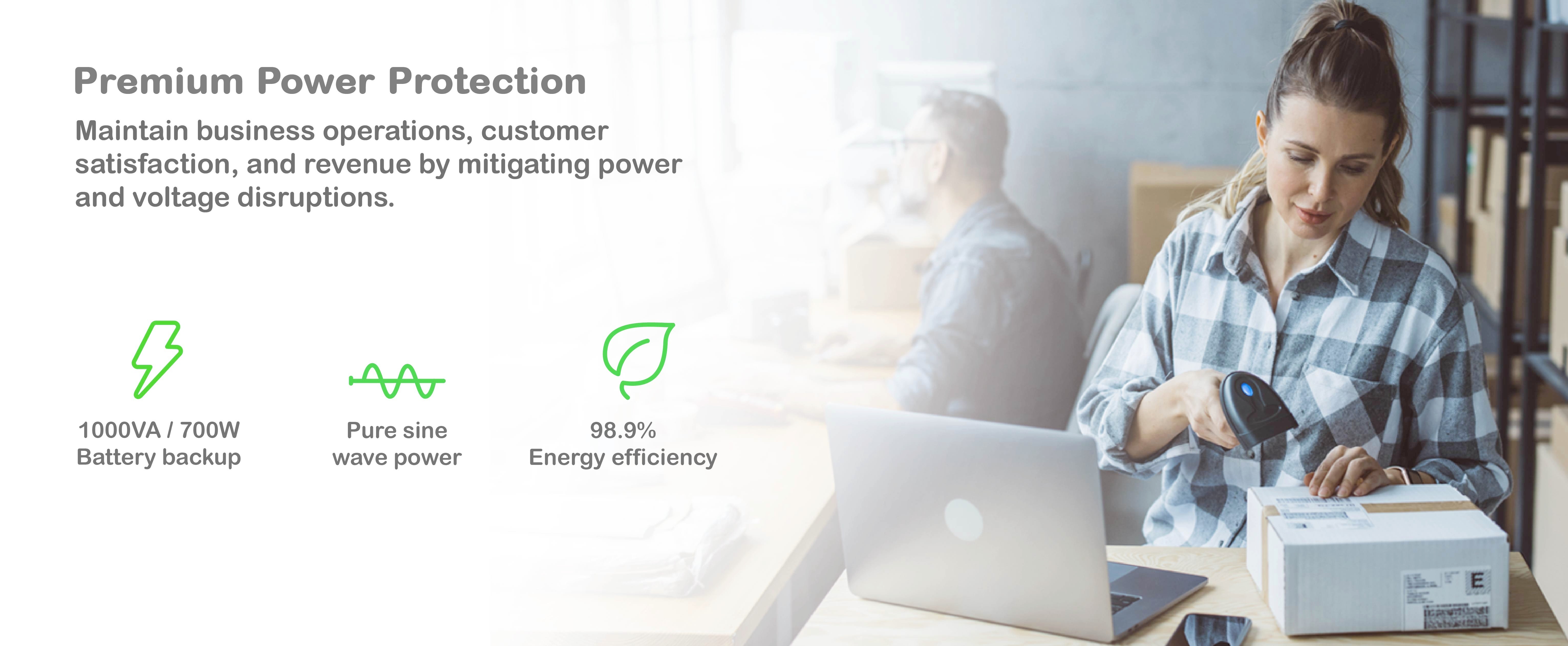 Graphical LCD display Quick, easy-to-read, intuitive LCD provides information about the utility and UPS conditions. |