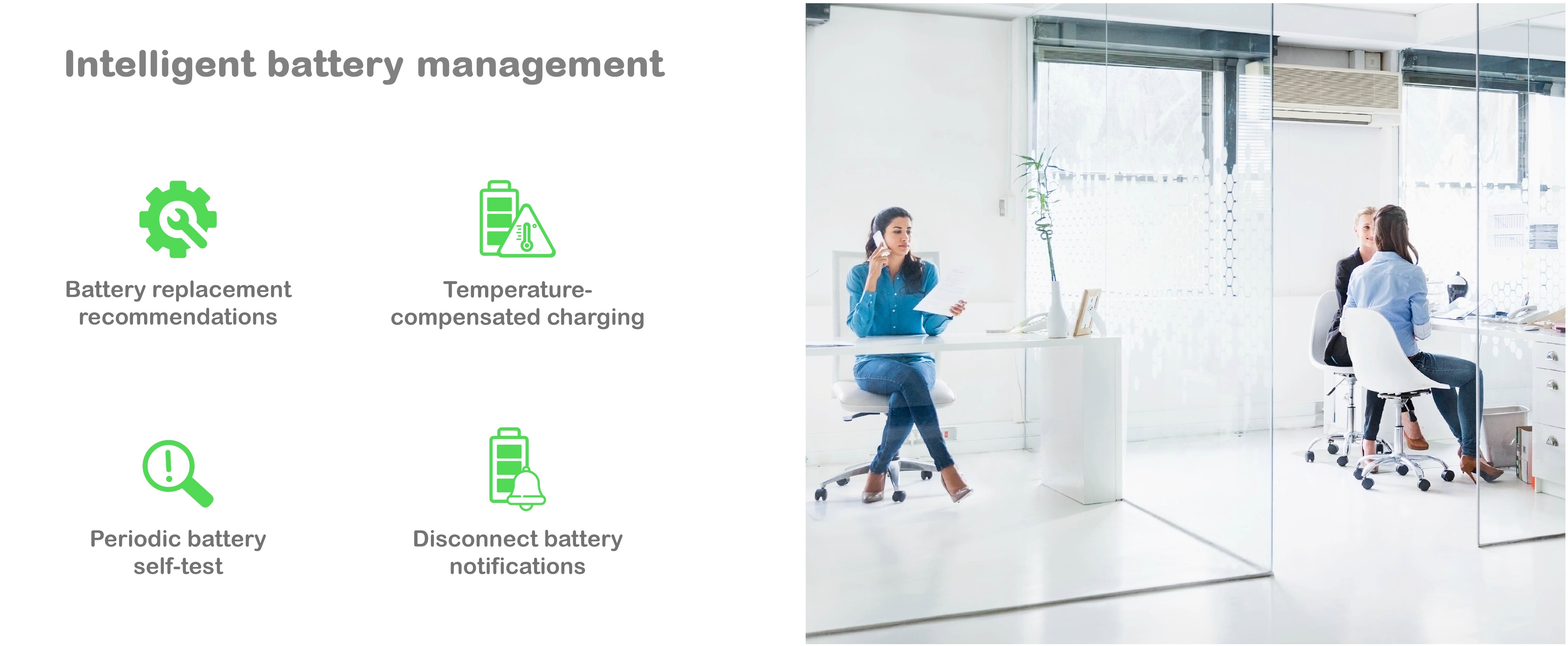 All new devices are on-boarded to the Standard plan with remote power monitoring, UPS and power events, automated distribution of firmware to UPSs with one-click remote installation and downloadable asset and renewal reports. Advanced Plan option provides UPS Outlet Group reboot for remote power cycling of connected IT equipment. Features vary with terms of use.