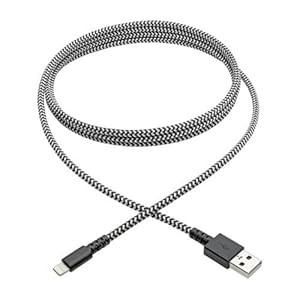 Tripp Lite’s black-and-white M100-006-HD Heavy-Duty USB Sync/Charge Cable (M/M) connects your latest-generation iPhone, iPad or iPod to the USB-A port on your computer or USB wall charger, so you can charge your Apple device and transfer data at the same time. Plus, this cable is specially designed using Aramid fiber to stand up to the strain of daily use.