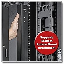 This 0U PDU mounts vertically in EIA-standard 19 in. 2-post and 4-post racks using the included toolless mounting buttons or rack-mounting brackets. Using the included PDUMVROTATEBRKT mounting accessory, you can install it with outlets facing either the front or rear, whichever direction offers better airflow or equipment access. Once the PDU is installed in your rack, included plug-lock insert sleeves prevent cables from becoming accidentally disconnected from their outlets.
