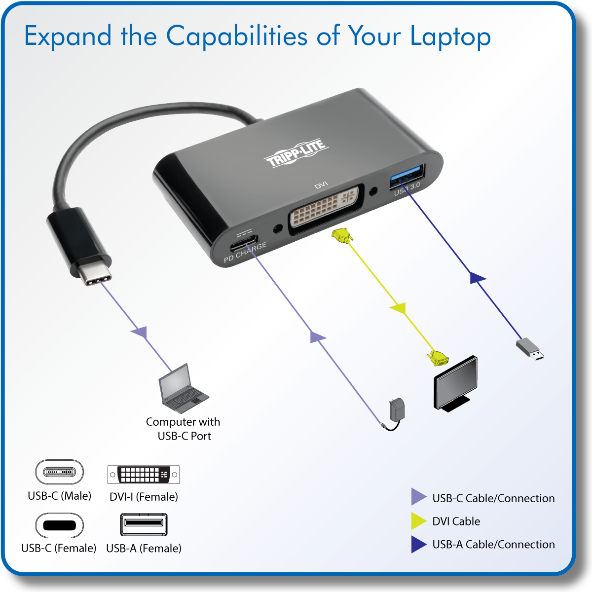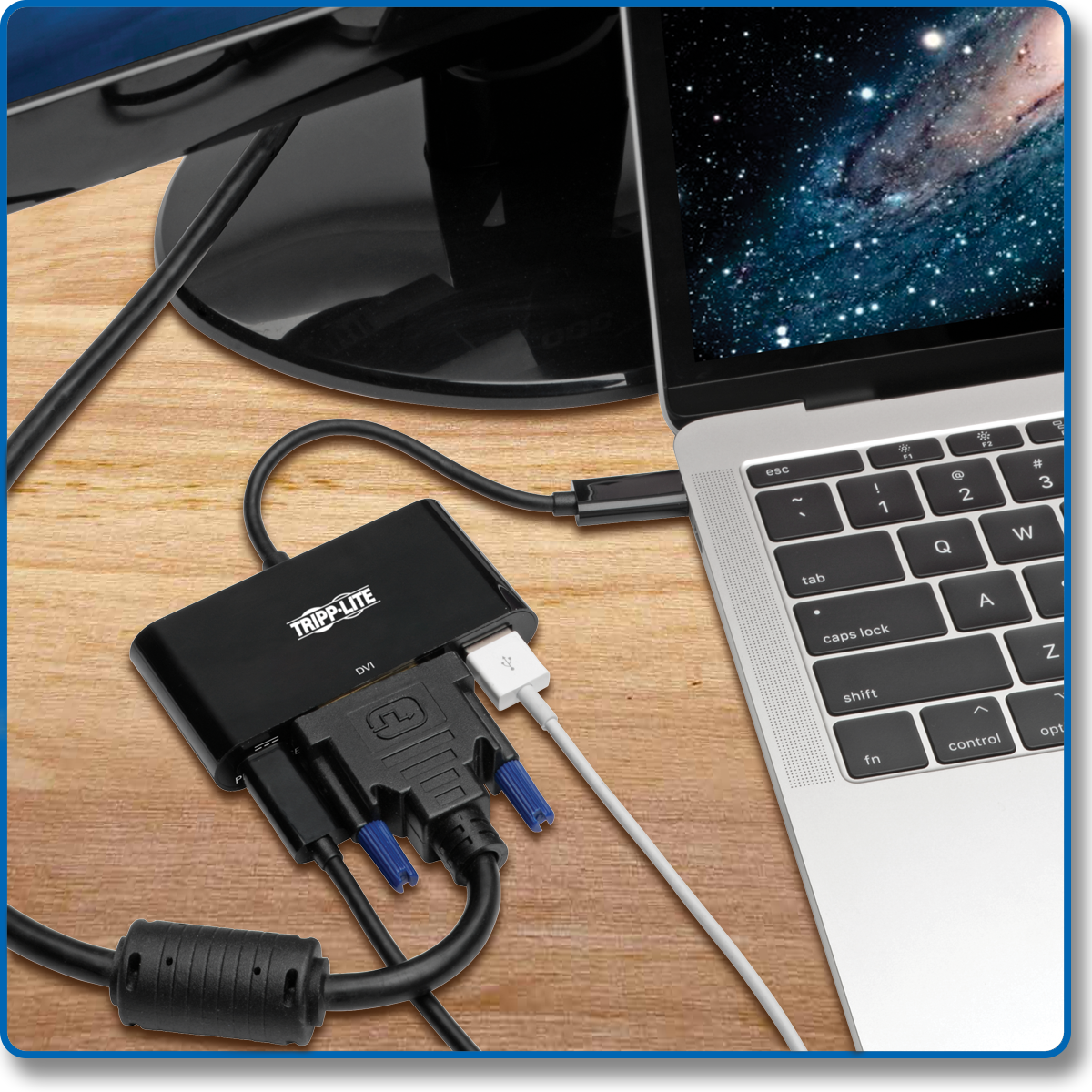 Newer tablets, laptops, Chromebook™ and MacBook® notebooks, desktop computers and even smartphones often have USB Type-C™ ports, but come equipped with few others. This Tripp Lite docking station expands the functionality of the USB-C™ or Thunderbolt™ 3 port on your device and makes it compatible with your existing equipment.