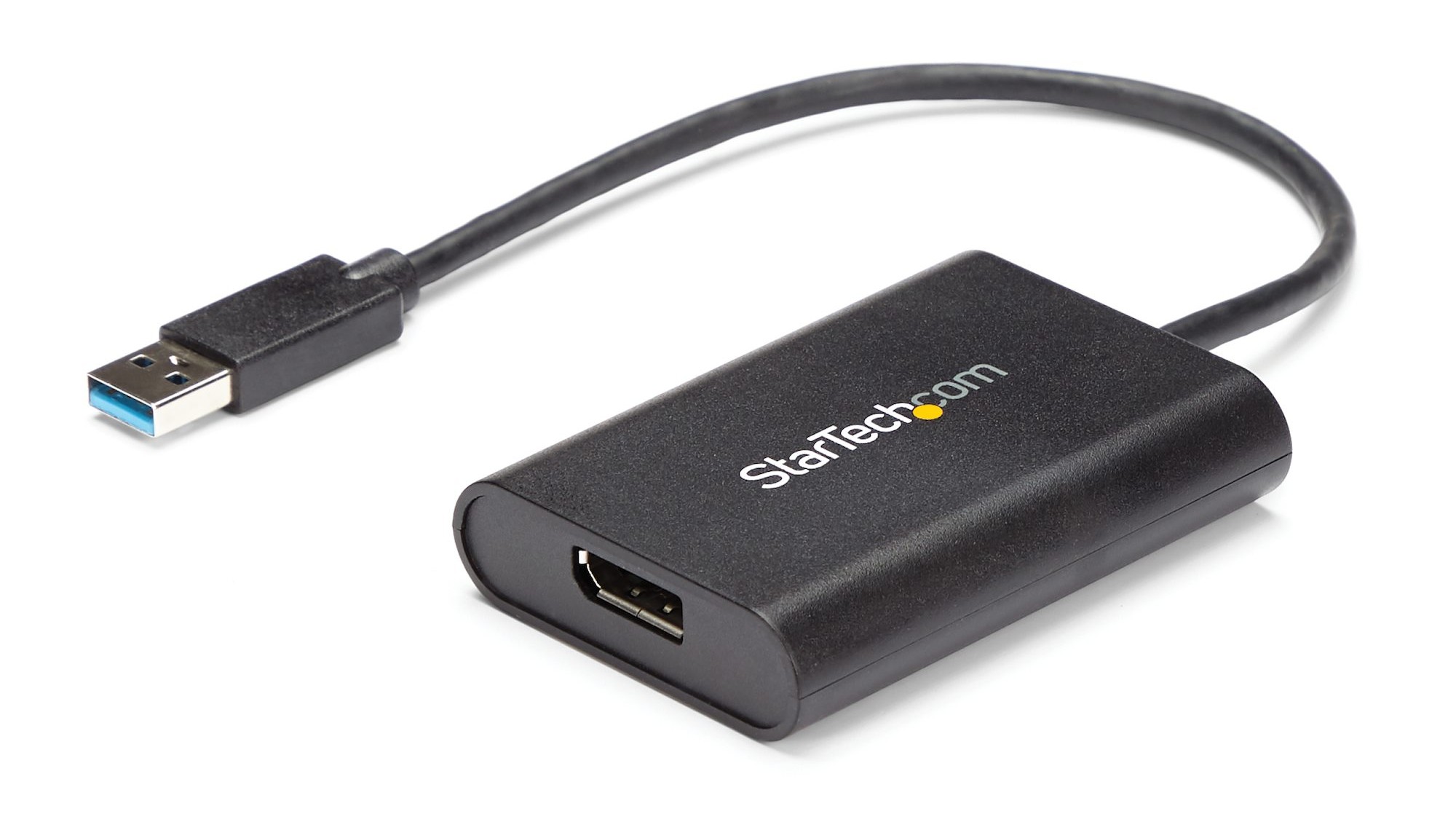 This USB to DisplayPort adapter lets you connect your computer to a 4K DisplayPort monitor using a USB 3.0 Type-A port, even if your computer doesn't support 4K video.