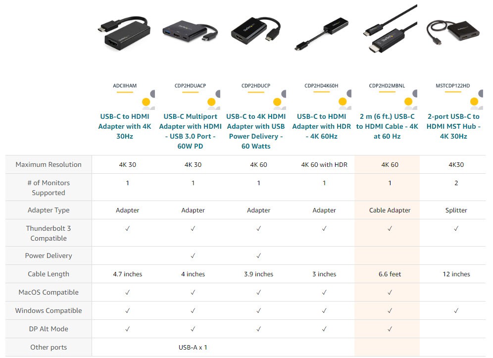 For shorter and longer installations, we also offer a 1 m (3 ft.) USB-C to HDMI cable (CDP2HD1MBNL) and a 3 m (10 ft.) USB-C to HDMI cable (CDP2HD3MBNL), enabling you to choose the right cable length for your custom installation needs.